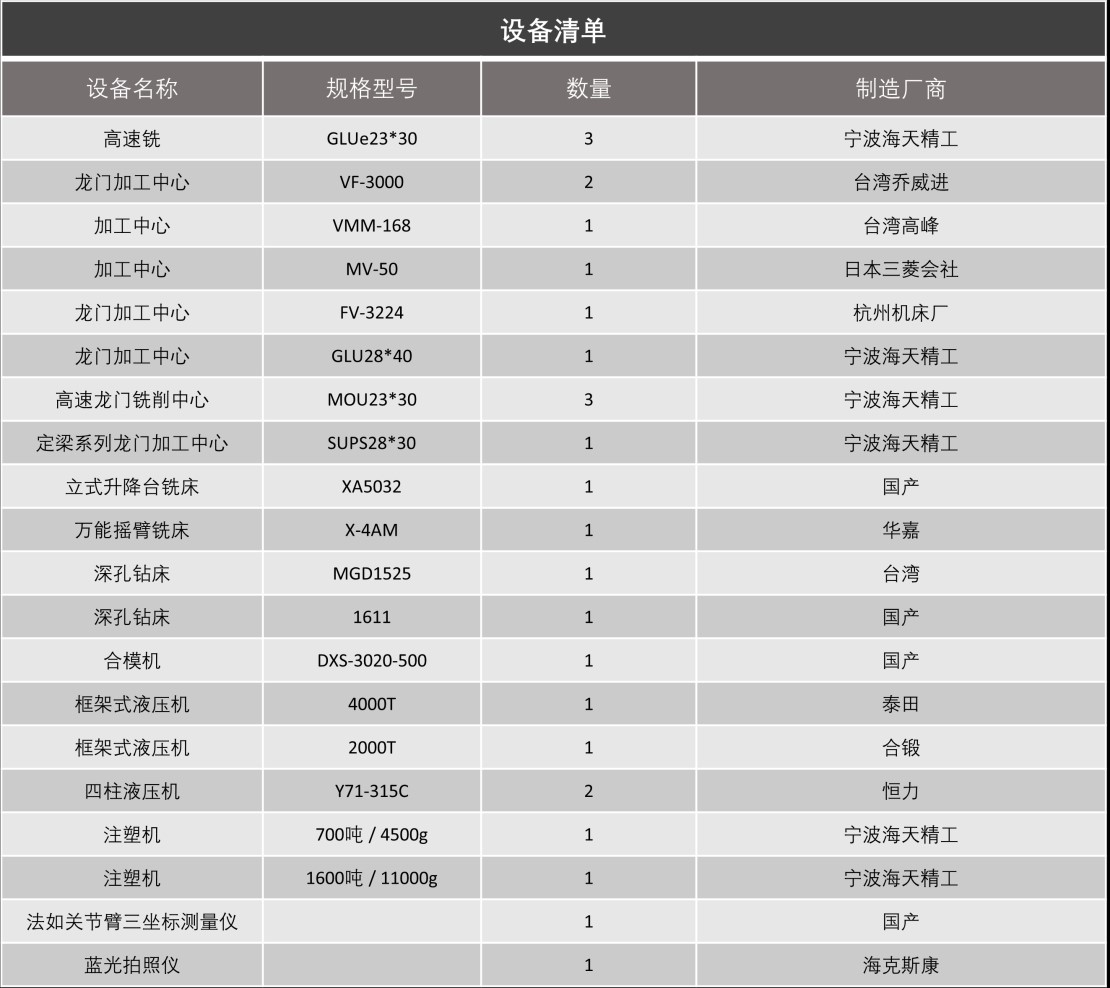 雙盛配備有海天品牌鎖模力700噸以及1600噸注塑機,以滿足客戶注塑模試模和小批量生產的需要。