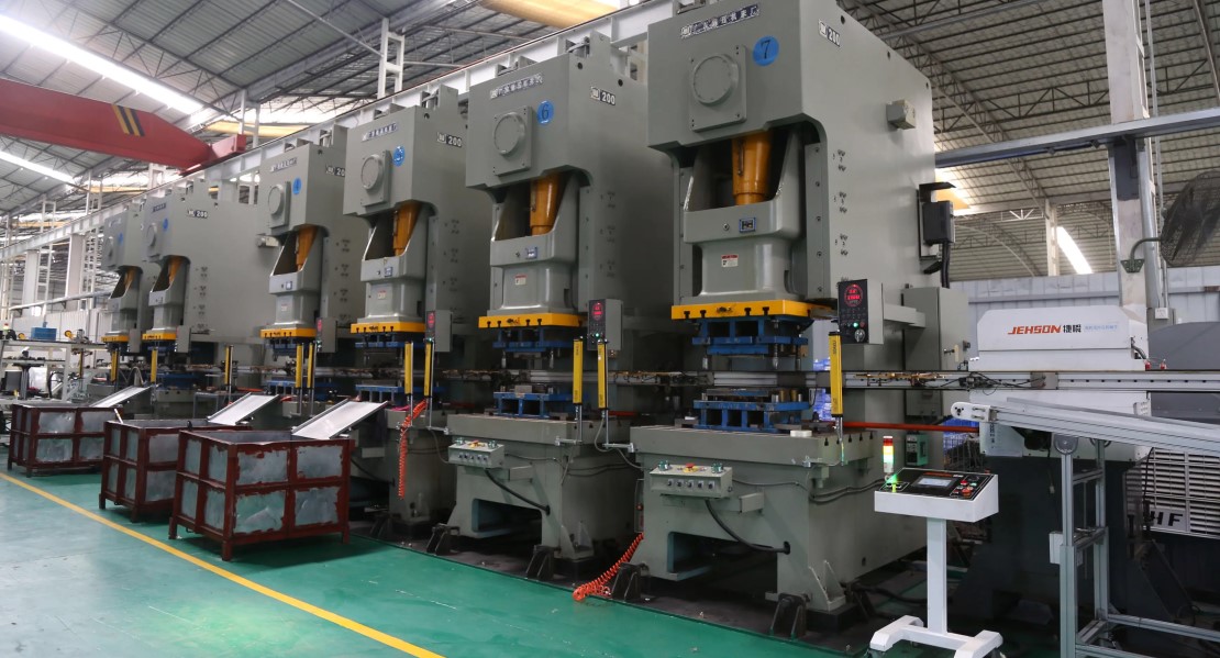 串聯自動化,由多臺沖床串聯排開構成1整條沖壓生產線,每臺沖床的模具對應獨立的成型工序,沖床之間的上下料由機器人來完成的—種沖壓自動化方式。主要適應于產量要求較小,加工工序不多且相對獨立,彈性生產能力較強的產品線。